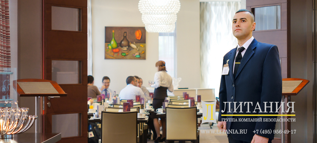 Посетители ресторанов приходят туда не только вкусно поесть, но так же провести деловой ужин, а так же отдохнуть и расслабиться. Зачастую некоторые из посетителей могут переусердствовать в процессе расслабления и, под действием алкогольных напитков, могут нарушать порядок и мешать другим гостям ресторана. Поэтому от сотрудников охраны требуются не только высокопрофессиональные навыки охраны, но также быстро и деликатно, не нарушая комфортного пребывания других посетителей решать подобные ситуации. Та же необходимо предотвращать возможные кражи, порчу имущества ресторана, выявление зачинщиков нарушения порядка среди отдыхающих.